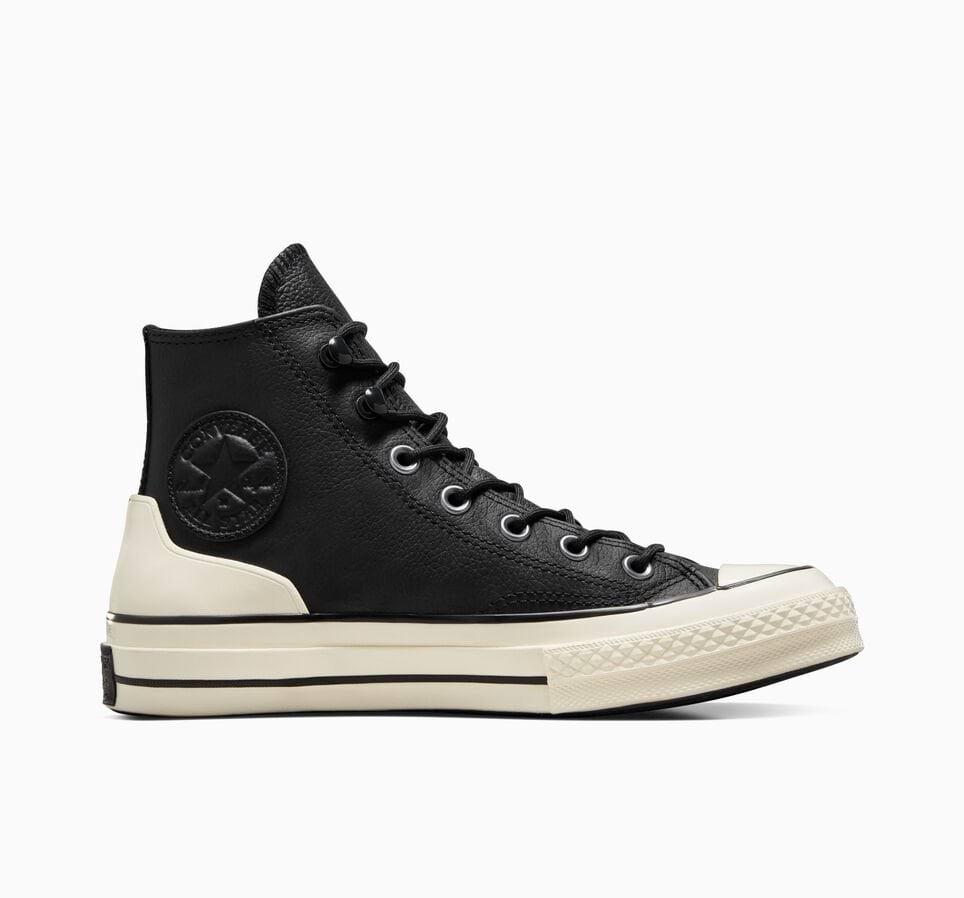Оставете влагата там, където ѝ е мястото - навън. Тези високи кецове ви пазят с водоотблъскваща горна част и високи гумени токове, за да блокират дъжда. Проектирани с мисъл за страхотните дейности на открито, това издание на Chuck 70 има кукички за връзките, вдъхновени от туристическия стил. Давай, излез навън.