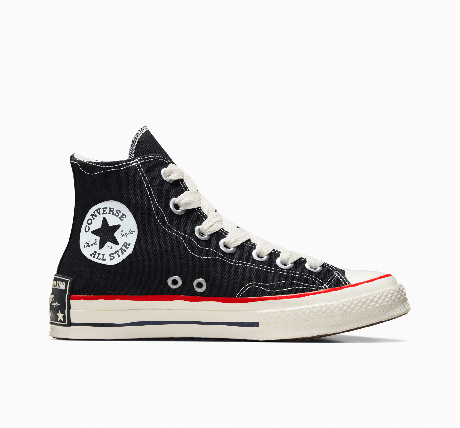 - Игриво представяне но логото на глезена на Chuck Taylor и регистрационния номер на All Star
