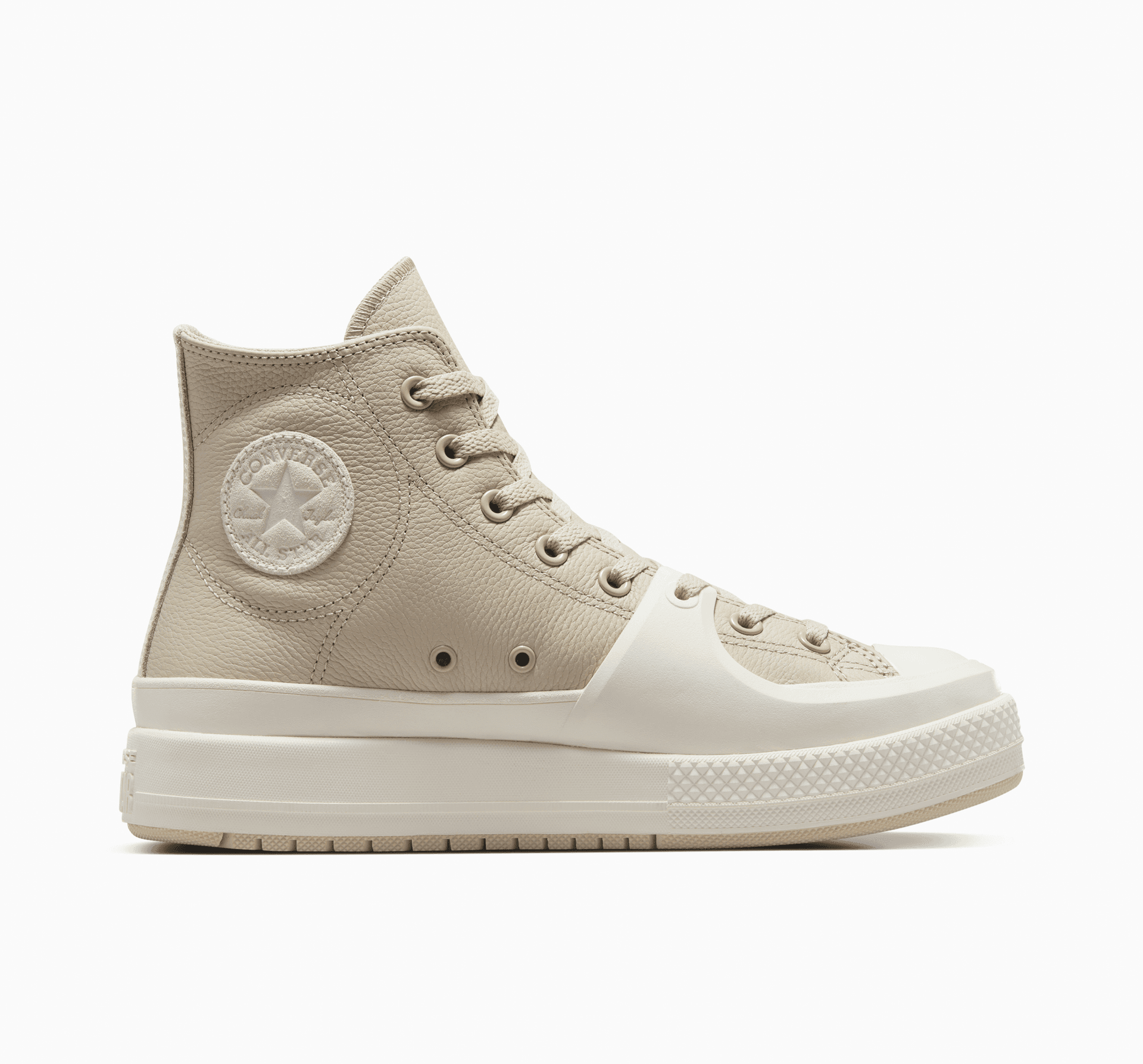 - Обувка с висока горна част от цяла зърнеста кожа с шевове за допълнителна издръжливост