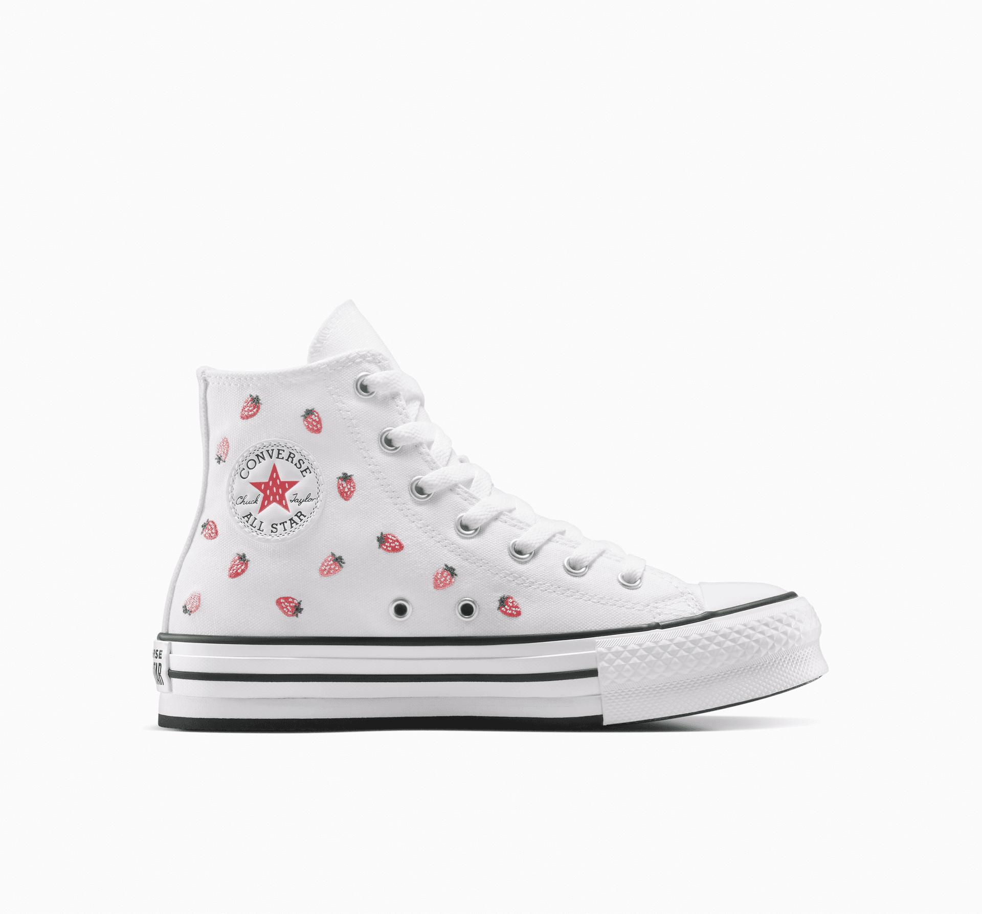 Стил, който ще зарадва – без излишна сладост. Избродираните ягоди украсяват повдигнатите Chucks, правейки всяка визия още по-сладка.