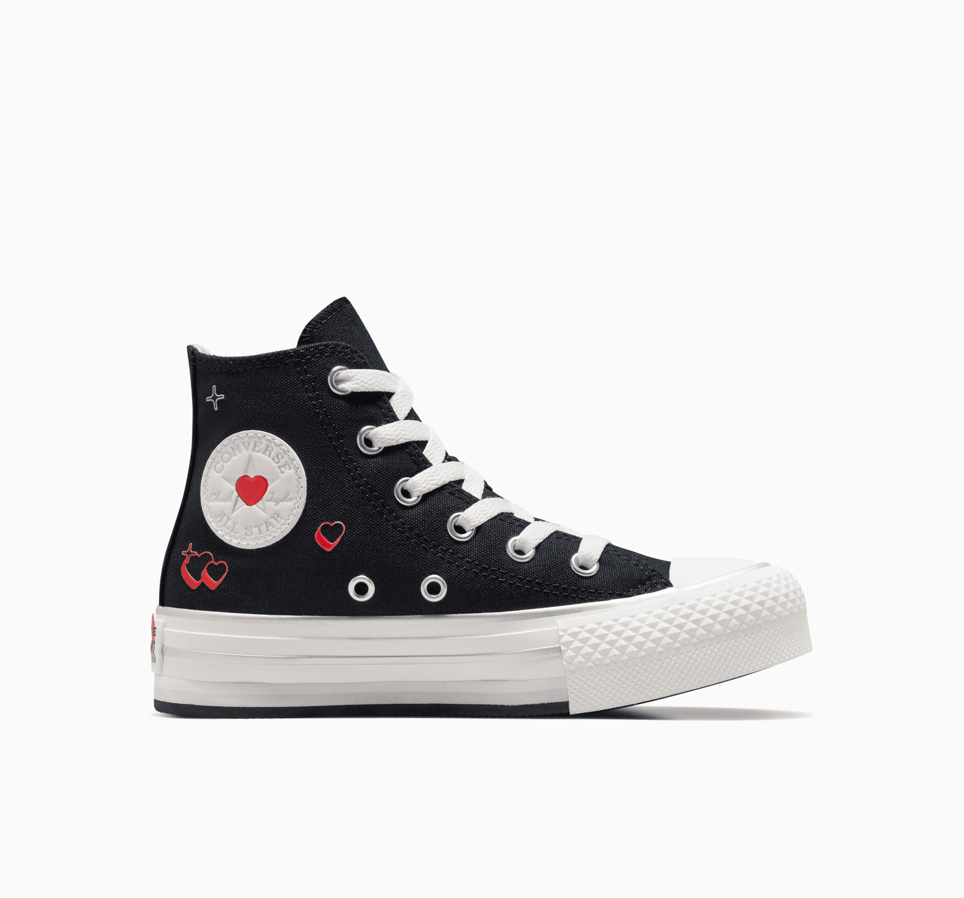 Розите са червени, виолетките са сини – направете тези кецове на платформа точно за вашето мини. Малки сърца и метални детайли се четат като любовно писмо до Y2K. Плюс това, има малко сърце но логота на глезена, за още повече обожание.