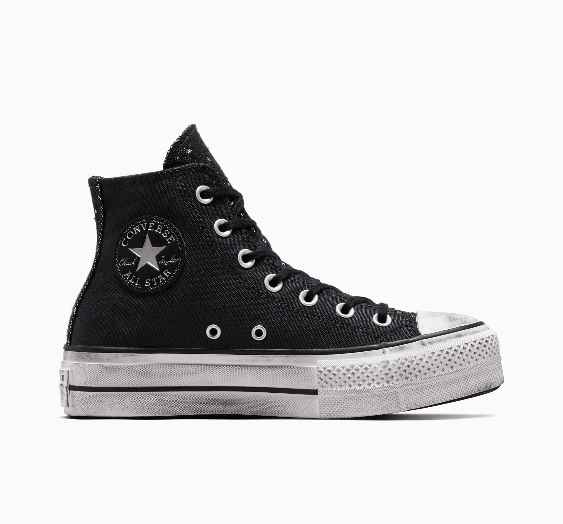 Разгърнете своята пънк страна в характерния стил на Chuck Taylor. Емблематичната висока горна платформа получава актуална актуализация с шипове и полирана гума за обичан външен вид, направо от кутията.