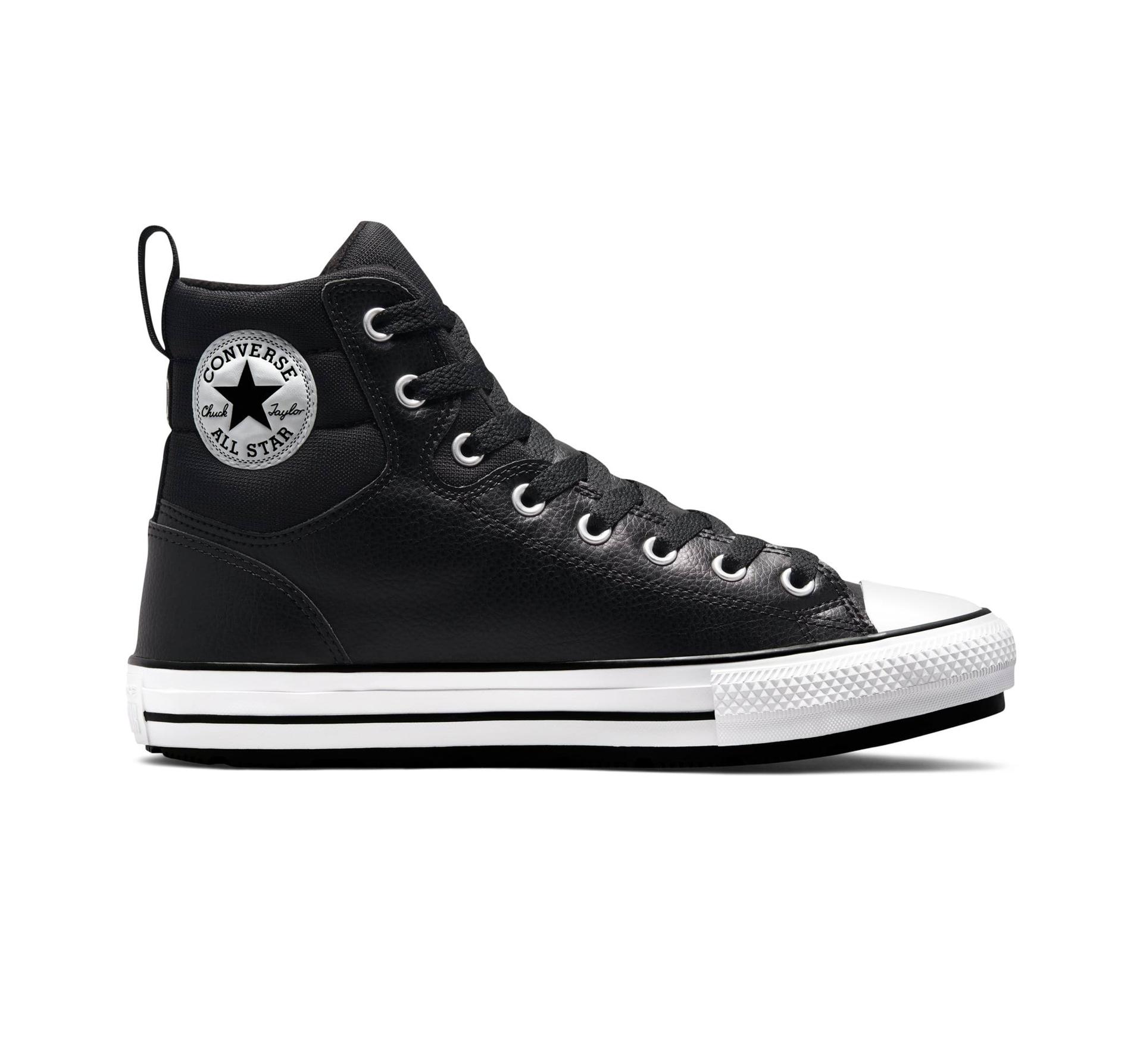High-top boot with water-resistant, faux leather upper made from about