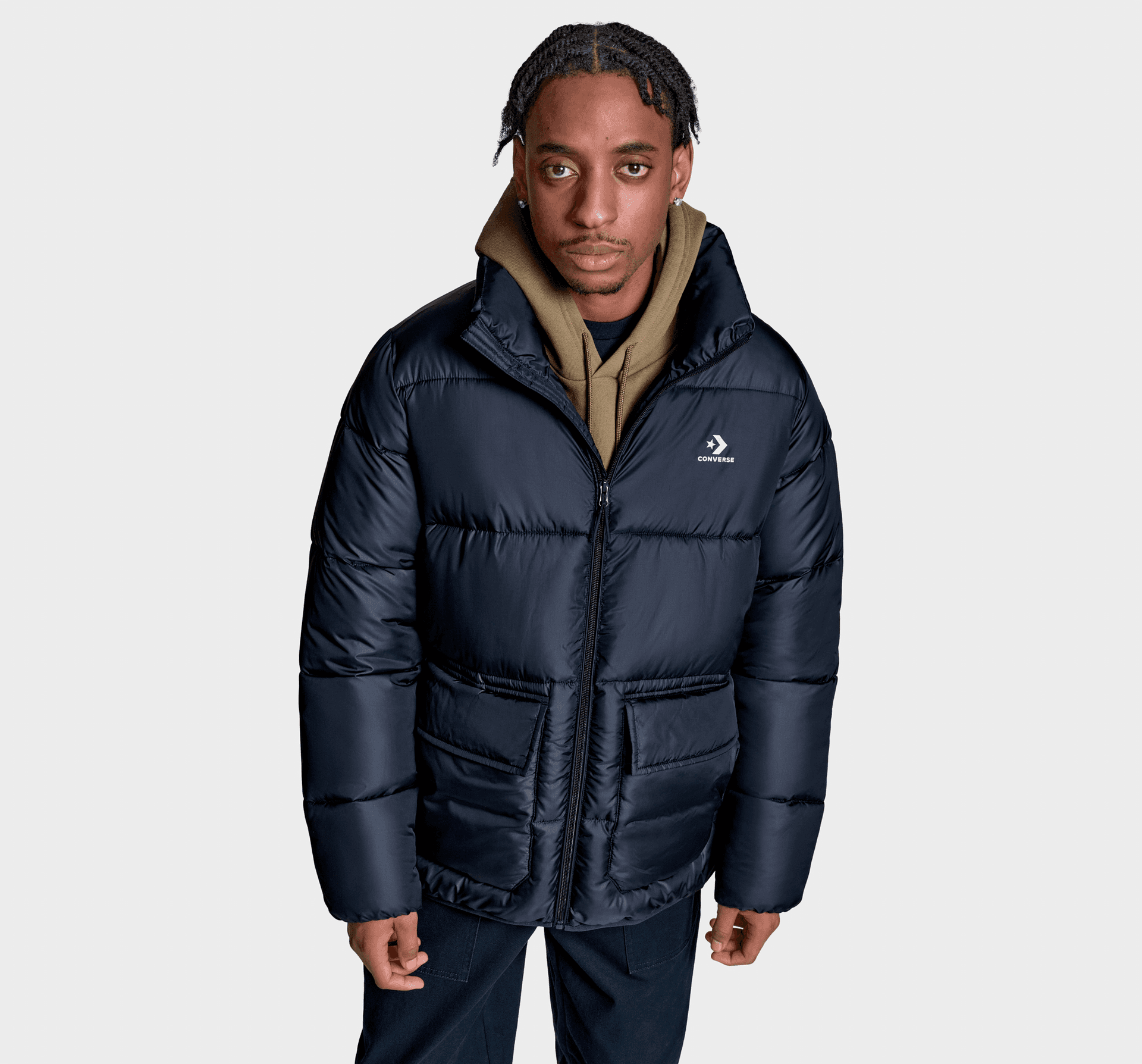 Лека и топла конструкция с многослойна изолация и външни джобове за допълнителен стил и функционалност.