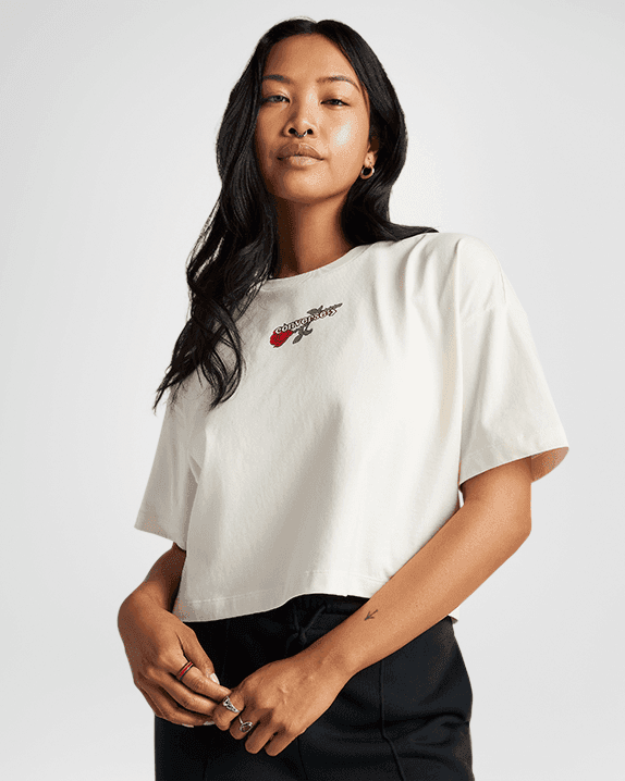 Не позволявайте на бодлите да ви заблудят, тази тениска е супер мека - с графика на роза, които я поддържат непринудена и романтична.
